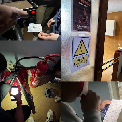 Con esta narrativa, los alumnos del año anterior organizaron una escape room para nuestros socios del centro ocupacional El Arca. Este curso, el nuevo grupo ha heredado el escape room modificando algunas de las pruebas para instalarlo en la antigua casa del conserje y ofrecerlo a todos los alumnos que cursan Formación y Orientación Laboral en el centro como repaso a los conocimientos que han adquirido sobre prevención de riesgos laborales.